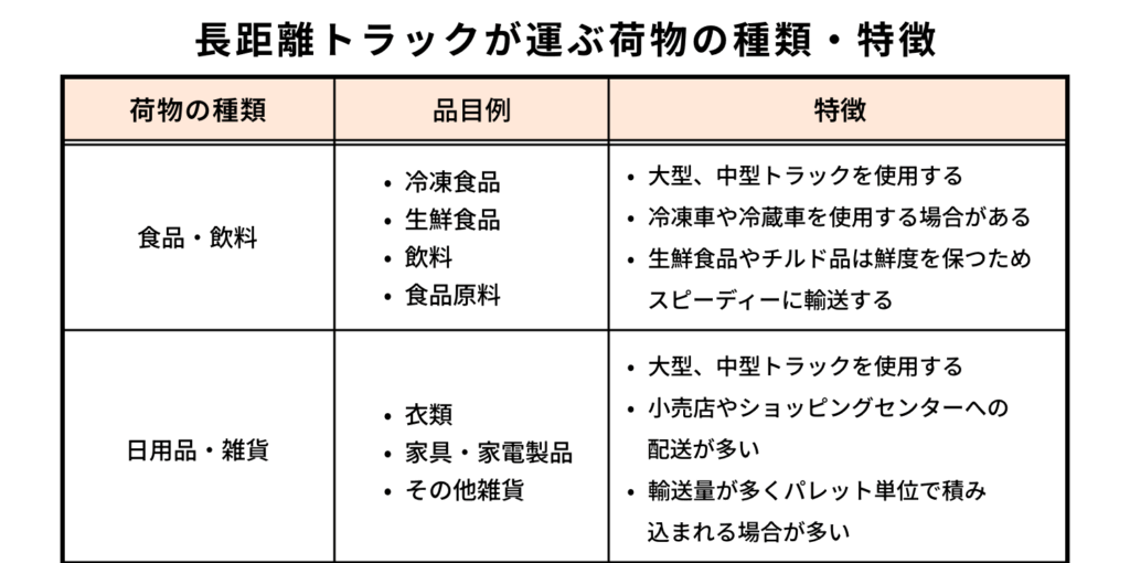 長距離トラックが運ぶ荷物の種類と特徴