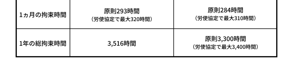 また、1日の拘束時間も16時間から15時間へ短縮され、延長できるのは週2回までとなります。
